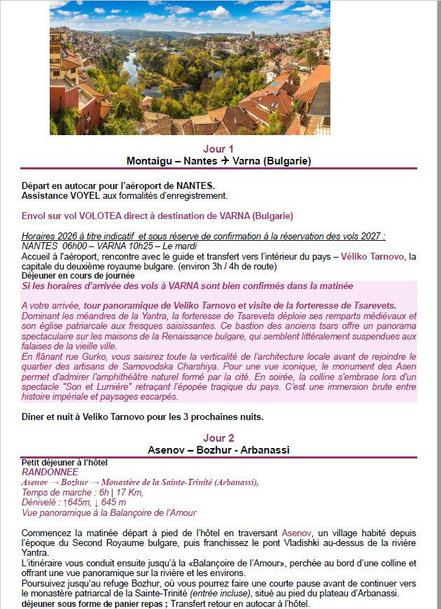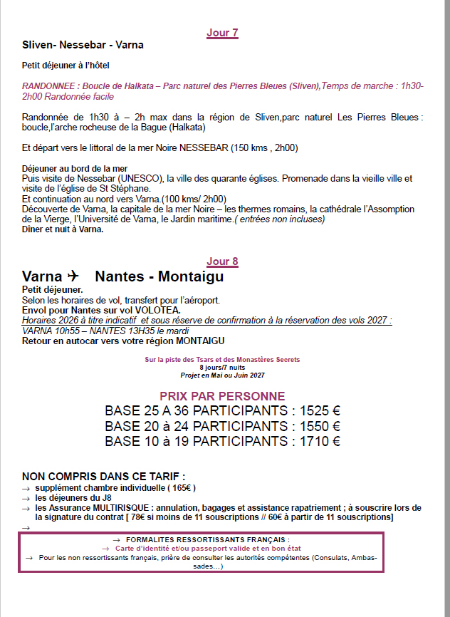 Séjour en Bulgarie, en mai ou juin 2027